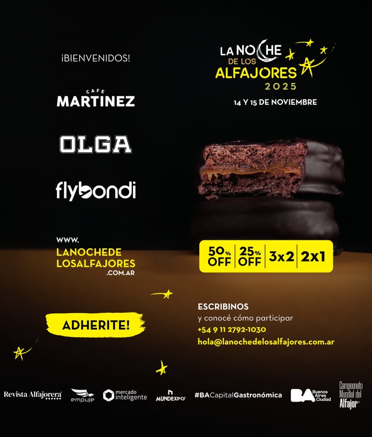 👉 Todos los descuentos, promociones y el mapa interactivo con las empresas participantes pueden consultarse en www.lanochedelosalfajores.com.ar y en @lanochedelosalfajores donde se actualizará la información en tiempo real durante los días del evento.